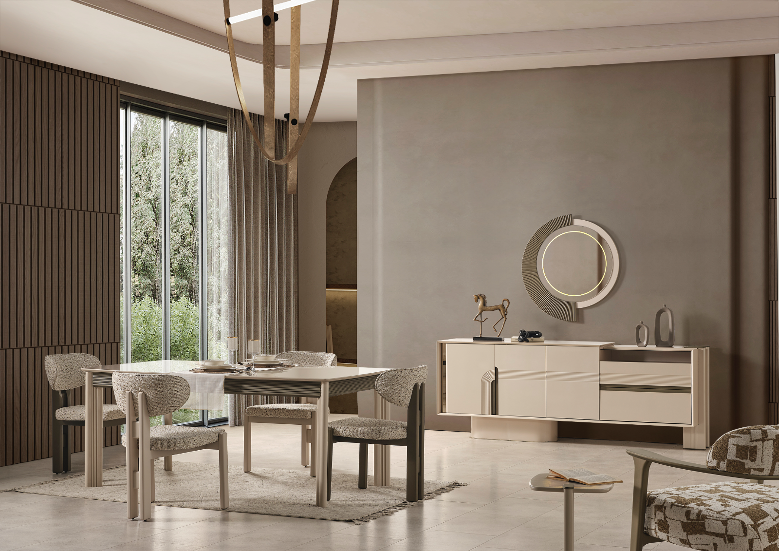 Petra Yemek Odası, modern çizgileri ve zamansız zarafetiyle evinizin kalbinde hem şık hem de sıcak bir davet alanı oluşturuyor. Dayanıklı yapısını estetik detaylarla birleştiren bu özel takım, en keyifli akşam yemeklerinizde sevdiklerinizle kuracağınız bağlara konforlu ve kaliteli bir şahitlik ediyor. Yaşam alanınıza prestij katan Petra ile siz de her öğünü bir ziyafet tadında yaşayabilir, evinizde aradığınız o huzurlu ve lüks atmosferi hemen yakalayabilirsiniz.